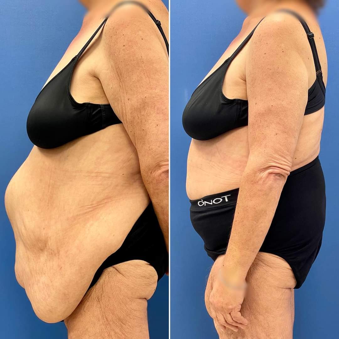 המטופלת, בת 58, עברה מתיחת בטן לפני 7 שבועות. את הניתוח וההרדמה עברה בהצלחה, ללא צורך בטיפול נמרץ, והשתחררה למחרת לביתה. התוצאה תמשיך להשתפר עם חלוף הבצקת.