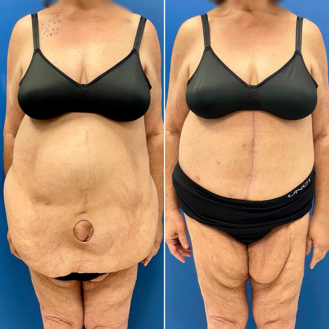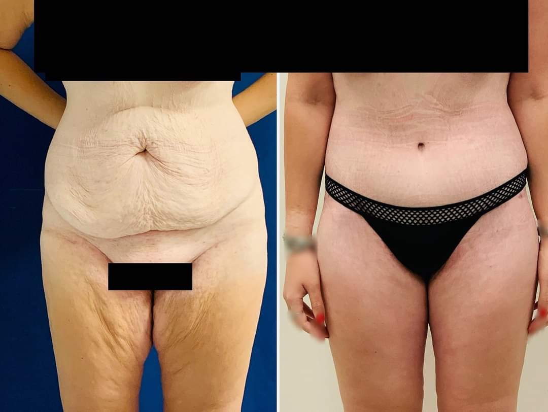 בניתוח משולב, ביצעתי שיחזור של דופן הבטן שכלל הידוק מחדש של השרירים, כריתה של עודפי העור תוך יצירת צלקות ישרות וסימטריות יותר הממוקמות נמוך יותר בדופן הבטן, בקע שעירב את הטבור תוקן עי דר עמיר בן-יהודה (מקבוצת אסיא מדיקל), וביצעתי שיחזור של הטבור באמצעות מתלים מקומיים.