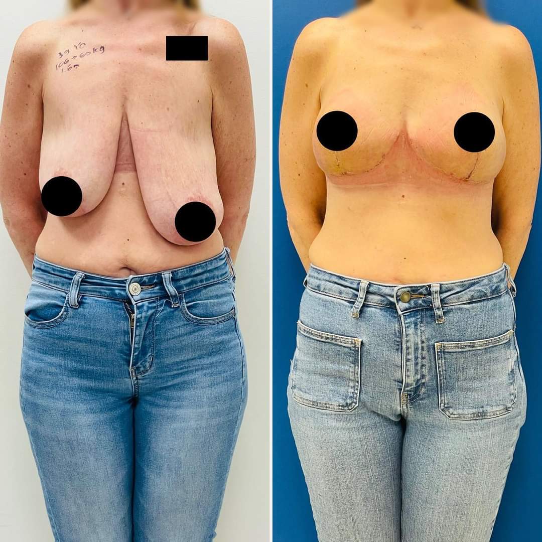 who suffered from large, heavy and asymmetrical breasts which deflated and sagged significantly after the weight loss was completed.