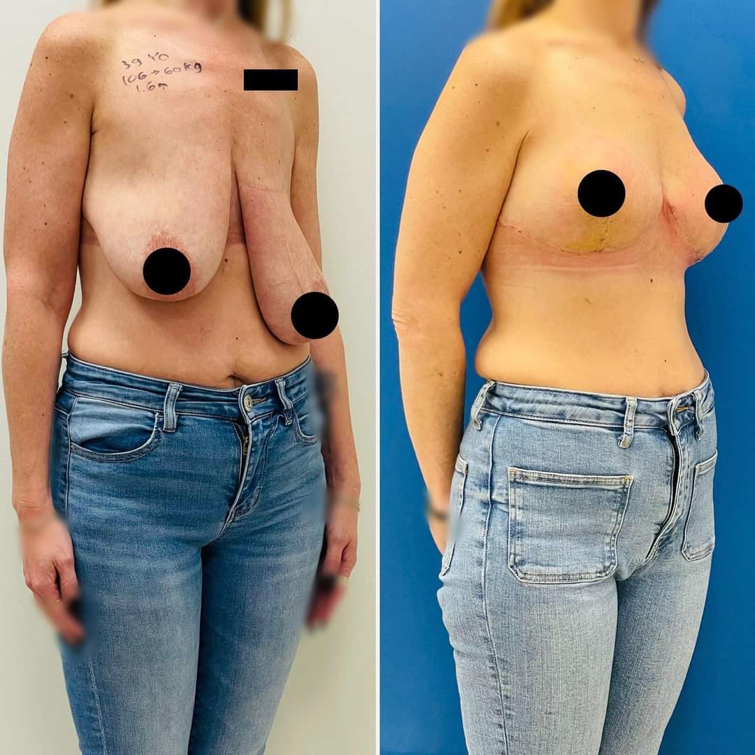 The asymmetry between the breasts made it difficult to fit bras, and the drooping and deflated chest caused damage to body image and the ability to enjoy the weight loss.