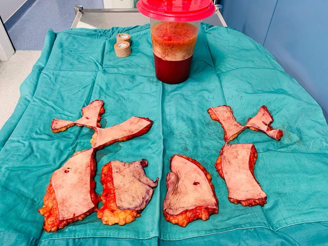 Снимок был опубликован с одобрения пациента 🧿❤️, и вы можете увидеть удаленную лишнюю кожу и жир, который был удален.