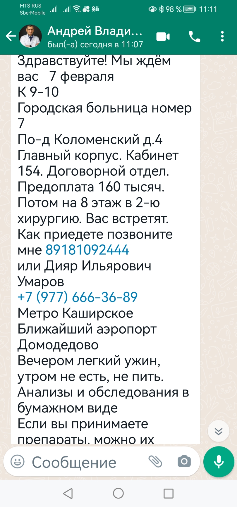 Всем доброго утра и хорошего настроения! Год как читаю ваши дневники и проживаю с вами все трудности и радости. Искренне радуюсь за каждую из вас и душой переживаю, как за своих родных. Вот решила создать свой дневничок, так как скоро стану одной из вас. Присоединяюсь к вашей дружной семье, где царит добро, поддержка и понимание. Мой день оп 7 февраля 2023 года, доктор Кармадонов. Вид оп пока для меня точно не понятен (шунт или резекция) . Я конечно планировала резекцию, но там ближе будет видно по анализам. Немного о себе: Мне 49 лет, мать двоих детей (две дочи), замужем. Вес 85кг, рост 162см. Почему я решилась на оп: есть на то две причины😃 Первая причина..... У меня дочь инвалид 1группа дцп и у меня нет возможности постоянно поддерживать свою форму в спортзалах, которых в нашем городе, можно сказать 😃и нет. На долгое время, не могу оставлять свою дочь, для неё это стресс. Дома занималась как только могла и в марафонах участвовала. Похудев на 3кг, в поте лица😃 я набирала их снова. До 36 лет у меня никогда не было проблем с весом. Размер носила 42-44.После 35 лет вес стал 64 кг и держался до 40 лет. После стал медленно расти. В 46 лет стал 72кг. В это время нас с дочей положили в больницу, ей сделали три операции за лето. Всё это время сидя около её кровати, я заедала своё волнения и переживание всем, чем только можно было. Сметала всё, особенно сдобу. Мало подвижный образ жизни и масса калорий, дали о себе знать.... Мой вес поднялся до 84кг плюс начался климакс. С больницы я прикатилась как колобок, округллились все мои объёмы 😃 Ляхи раздуло, попа оттопырилась, как у утки и вылез живот. Вот таким карандухом я стала. Конечно же я боролась с набранными кг. Меня бросало: то в пот, то в жар, дышать трудно, колени стали болеть. Стала участвовать в марафоне, потерянные кг возвращались быстро. Решила вспомнить катание на роликах, но не учла, что вес уже не тот, упала и сломала руку, да ещё правую и со смещением в локте.